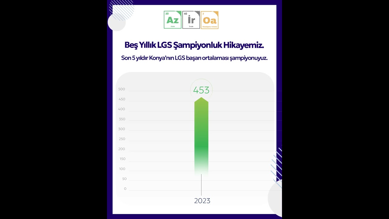 Bu yolun sonunda bizi farklı kılan bir gerçek var: Son 5 yıldır Konya’nın LGS başarı ortalaması şampiyonuyuz. Biz bu başarıyı puanla sınırlamayız; emekle kurulan plan, güçlü okuduğunu anlama ve sürdürülebilir çalışma alışkanlığıyla anlatırız.