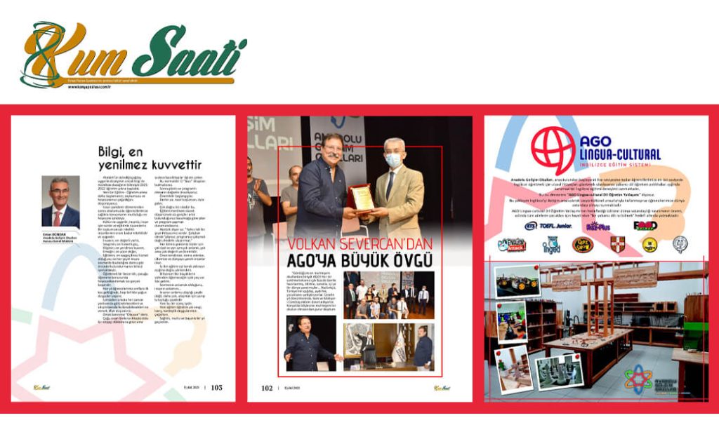 AGO İngilizce Eğitim Sisteminden, Genel Müdürümüz Ertan Dündar’ın köşe yazısına ve ünlü sanatçı Volkan Severcan’ın okulumuz hakkındaki muhteşem görüşlerine kadar haberimizin ayrıntıları, Kum Saati Dergisi’nde!