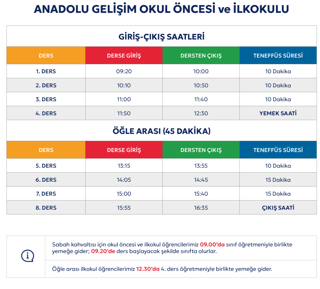 İlkokul Zaman Çizelgesi