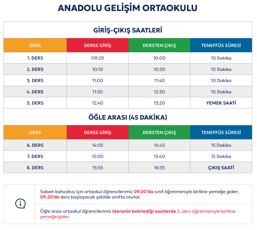 Ortaokul Zaman Çizelgesi