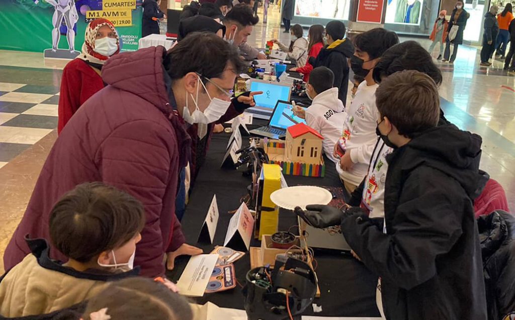Hayal ettikleri teknolojik icatları, önce kodlama üzerinde tasarlayan daha sonra da 3 boyutlu ürünlere dönüştüren AGOLU İnovatif Öğrencilerimiz, gerçeğe dönüşen hayallerini M1 AVM’de teknoloji severler ile paylaştı.